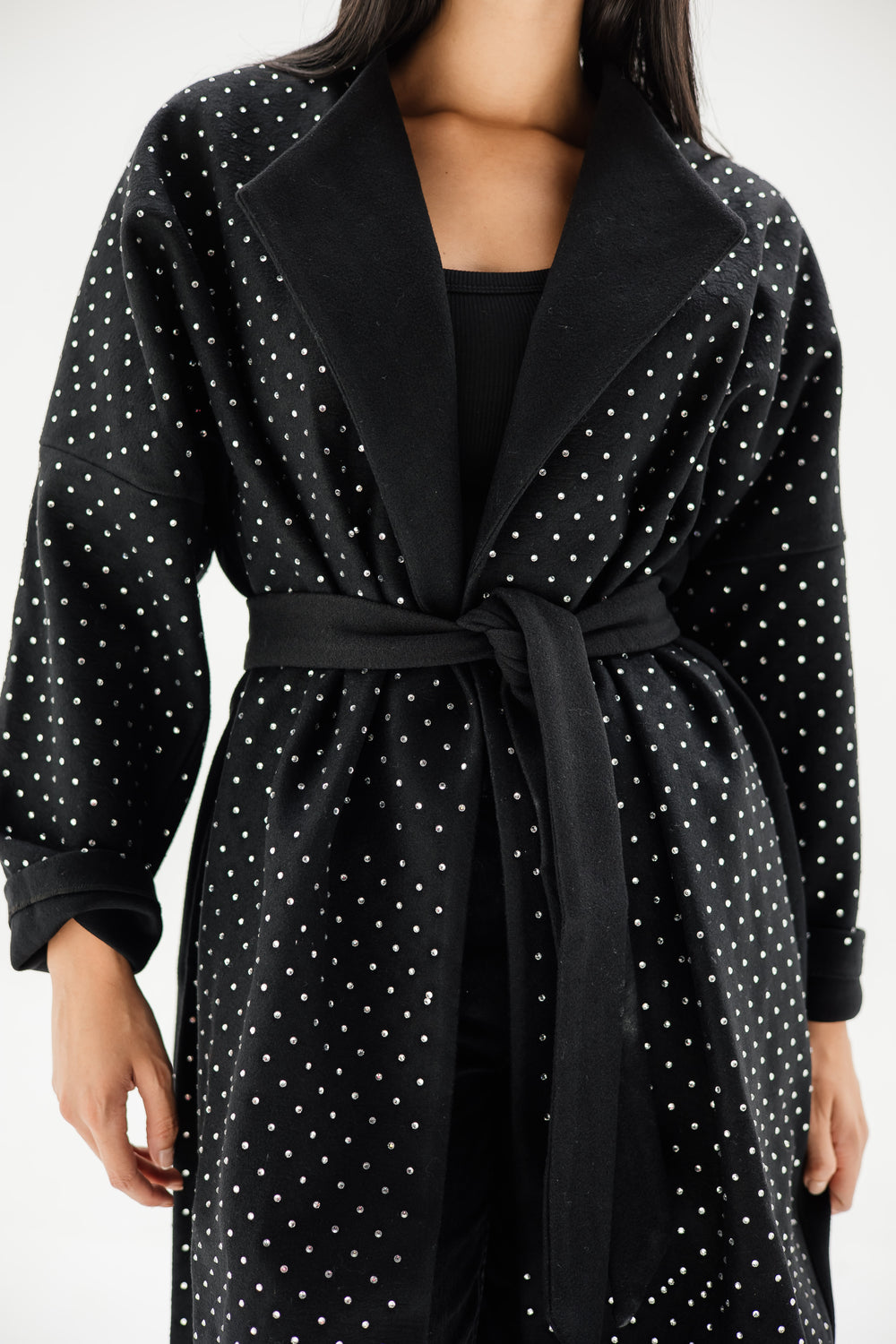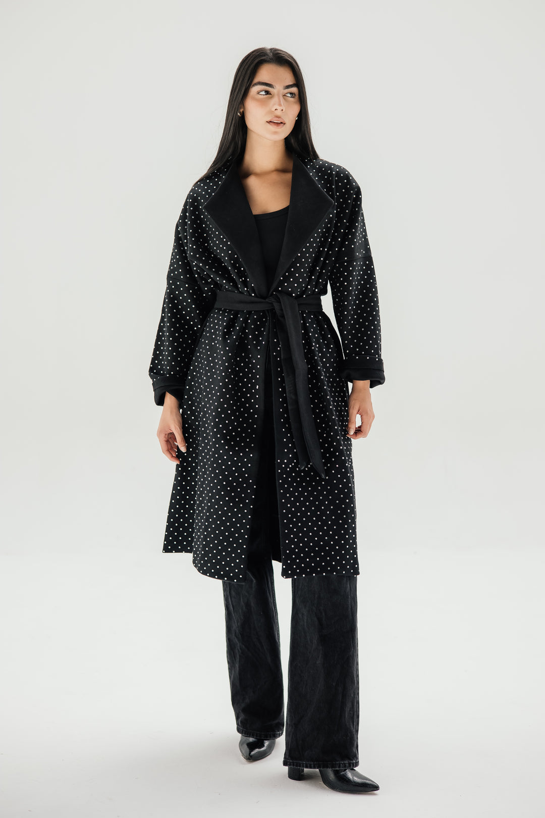 Belted collar coat- black