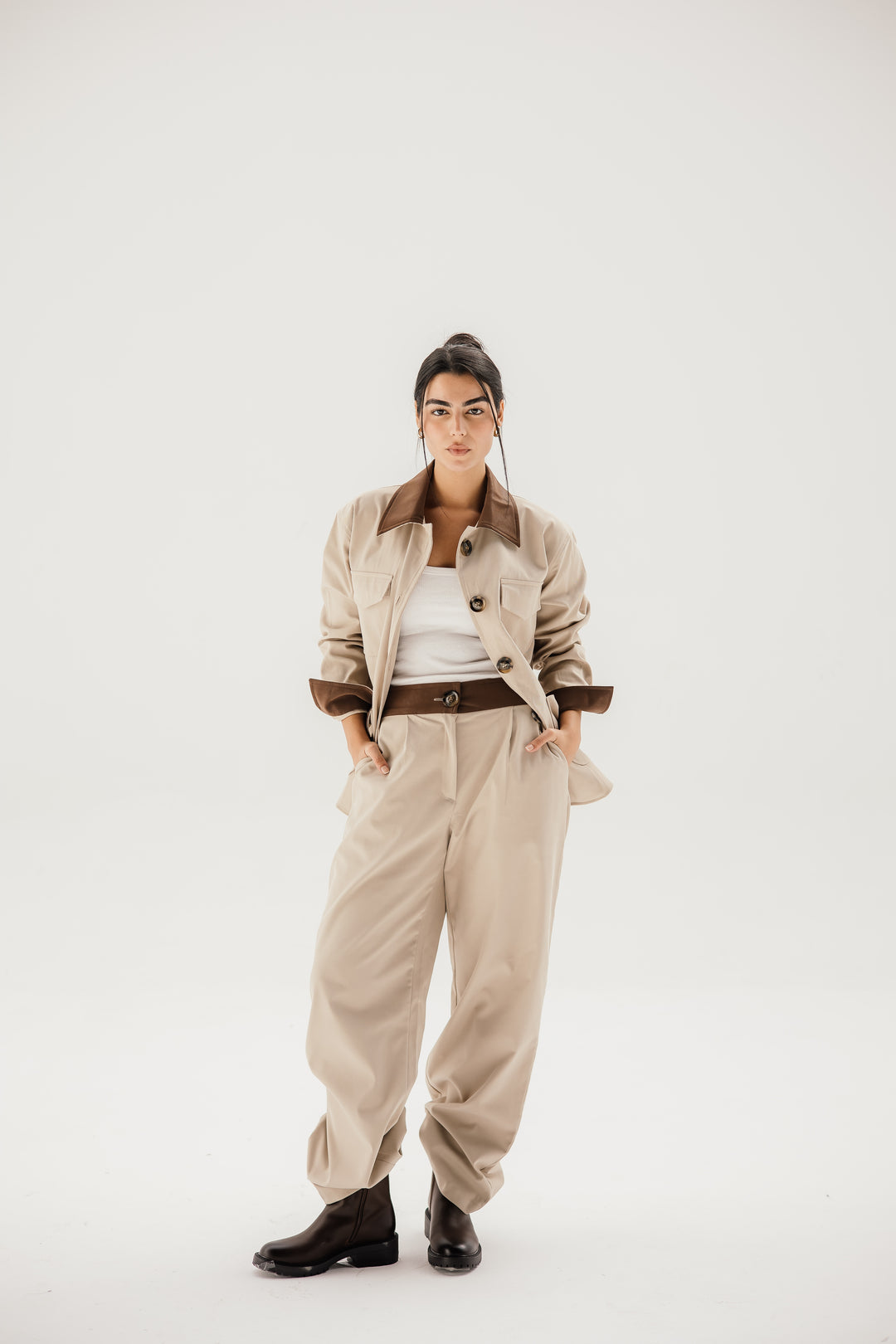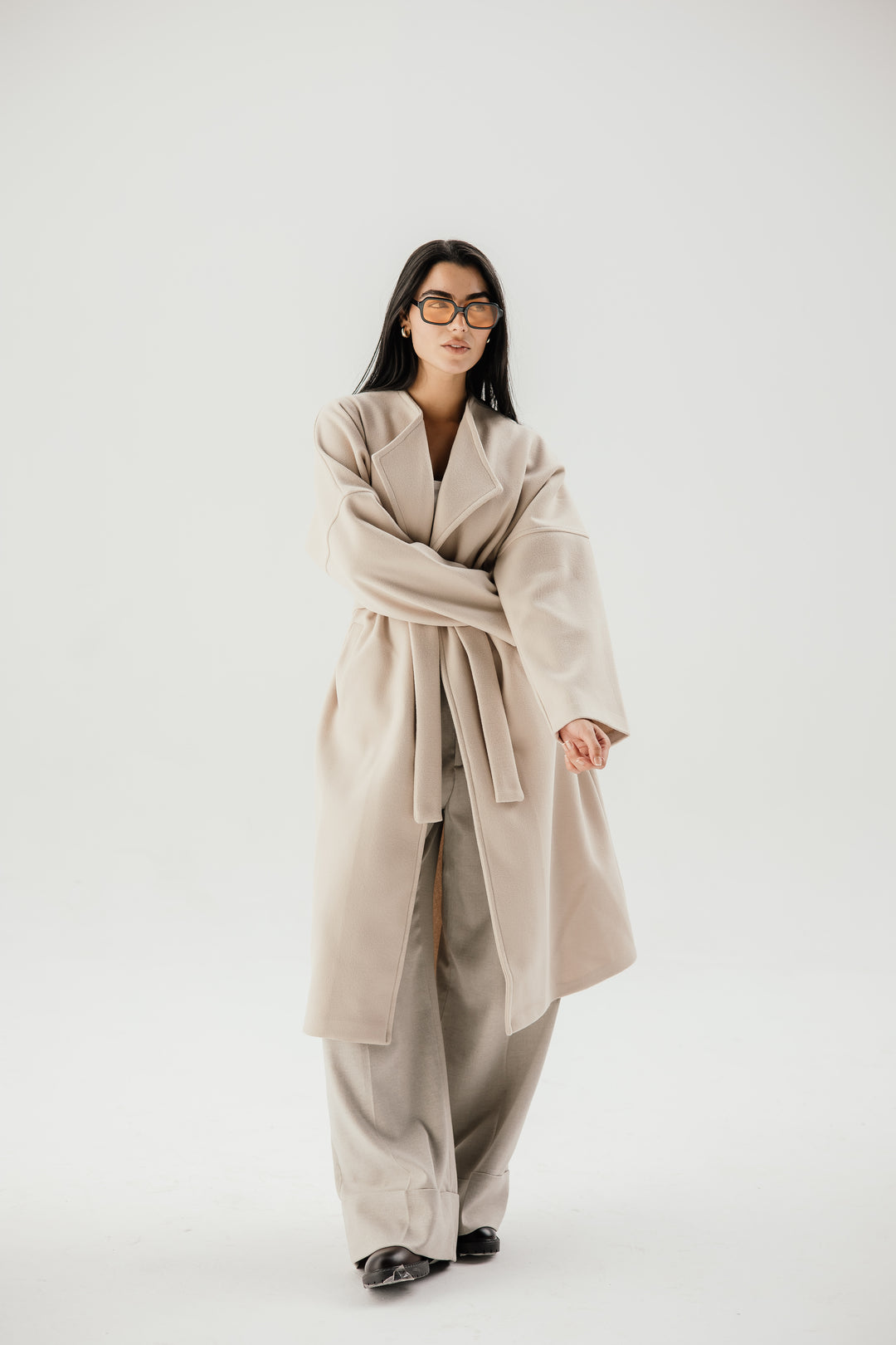 Belted collar coat- beige
